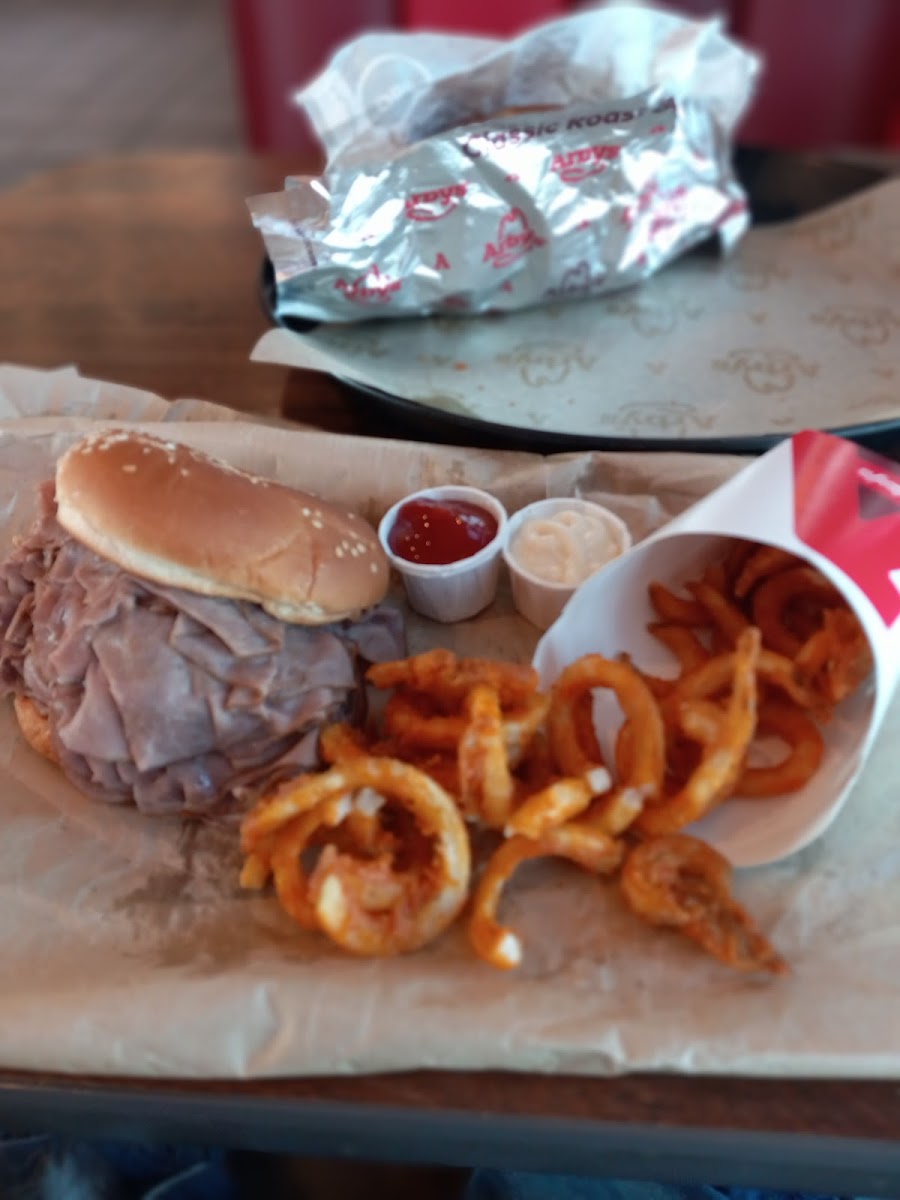 Now, let’s talk about what really matters - the food. The Beef ‘N Cheddar is an undeniable classic, layered with thin-sliced roast beef, cheddar sauce, and that signature red ranch sauce on a toasted onion roll. Craving something bigger? The Wagyu Burger and Roast Beef Combo is a meaty masterpiece that satisfies every level of hunger. And of course, you can’t leave without trying the Loaded Curly Fries, piled high with cheese, bacon, and a touch of Arby’s sauce magic. Pair your meal with a Large Jamocha Shake, and you’ve got the perfect sweet finish to balance all that savory goodness.